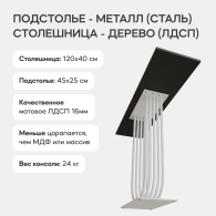– подстолье для стола изготовлено из металла (высококачественная сталь), с устойчивой (двойной) порошковой окраской (труба диаметром 2 см); столешница – ЛДСП 16 мм;