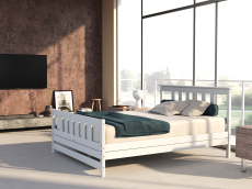 Двуспальная кровать "IRINA 2" ОЧЕНЬ КРЕПКАЯ так как усилена двойными рейками 20*90 мм по всем сторонам кровати. Благодаря 5 опорным стойкам по середине двуспальной кровати устойчивость повышена, чтобы выдерживать максимальный вес 200 кг.