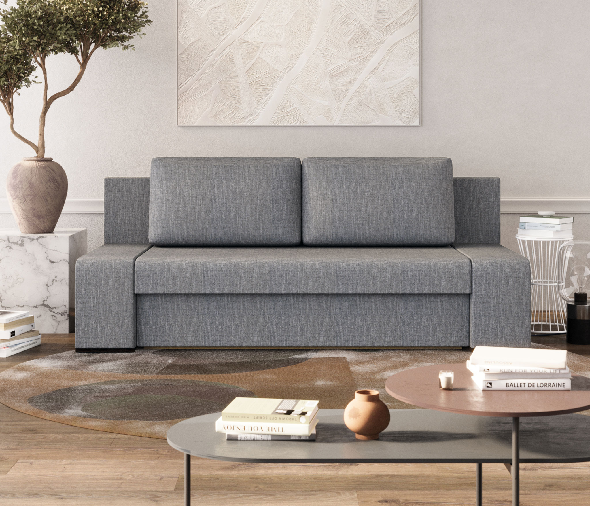 Эргономичный и функциональный диван «Монако» с механизмом «Еврокнижка» и бельевой нишей применим для ежедневной трансформации и зонирования помещения – его тыльная сторона выглядит также эстетично, как и фронтальная. Модель не имеет подлокотников, поэтому при ширине 2080 мм диван не выглядит громоздко и позволят разместить по бокам столики для настольных светильников, книг, бокала вина и других атрибутов отдыха.¶Обивка дивана «Монако» выполнена из мебельной рогожки, которая внешне напоминает мешковину, но приятна на ощупь, устойчива к разрывам и истиранию, легко поддается чистке. Механизм «Еврокнижка» делает модель долговечной и простой в трансформации - достаточно потянуть сиденье на себя, а в освободившуюся нишу опустить спинку. Конструкция механизма не содержит сложных узлов и движущихся частей, поэтому здесь практически нечему ломаться.¶Купить диван «Монако» разумно в помещение, обустроенное в стилях «скандинавский минимализм» или «эклектика», где требуется яркий и оригинальный центральный элемент интерьера зоны отдыха. Завершат ансамбль подходящие по дизайну кресла, журнальный столик и другие элементы зоны отдыха.
