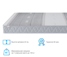 Отличный выбор для людей с весом выше среднего. Это жесткий беспружинный матрас, в состав которого входят как искусственные, так и натуральные материалы. В качестве наполнителя матраса используются 5 слоев латексированной кокосовой койры. Это натуральный материал на основе кокосового волокна, пропитанного натуральным латексом, а также листы высокоэластичной пены. Оба материала жесткие, упругие и очень долговечные. При этом матрас подходит для кроватей с подъемным механизмом. Это идеальный матрас для людей желающих поправить здоровье, улучшить сон и уменьшить боли в суставах. При выборе матраса следует помнить о том, что любой матрас не отвечает за правильность положения головы и шеи, их здоровье зависит от правильно подобранной ортопедической подушки. Для увеличения срока службы матраса рекомендуется его использование с защитным чехлом AquaStop.