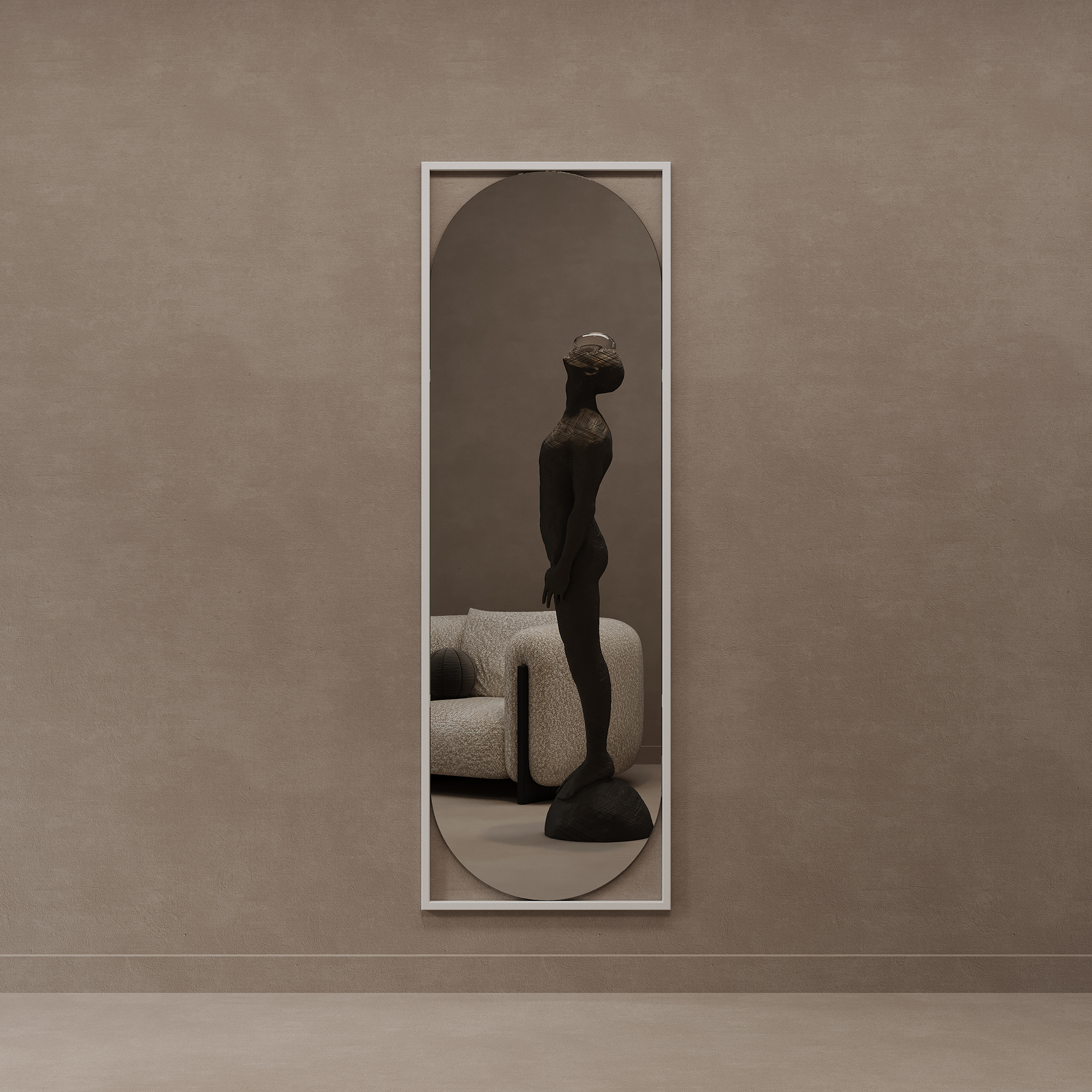 Дизайнерское настенное напольное зеркало GENGLASS Kvaden L в металлической раме (Белый) Код I0000319167