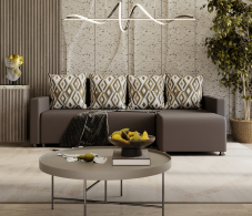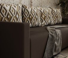 Долговечным и простым в использовании этот угловой диван делает механизм «Еврокнижка», надежно выдерживающий ежедневные трансформации и не требующий усилий для раскладывании - подушки убираются, центральная часть приподнимается и выдвигается вперед, а в освободившуюся нишу опускается спинка. Мягкие элементы модели созданы на основе упругого и износостойкого мебельного ППУ (пенополиуретана), который не вызывает аллергию, не накапливает пыль, не плесневеет, быстро восстанавливает форму после смятия.