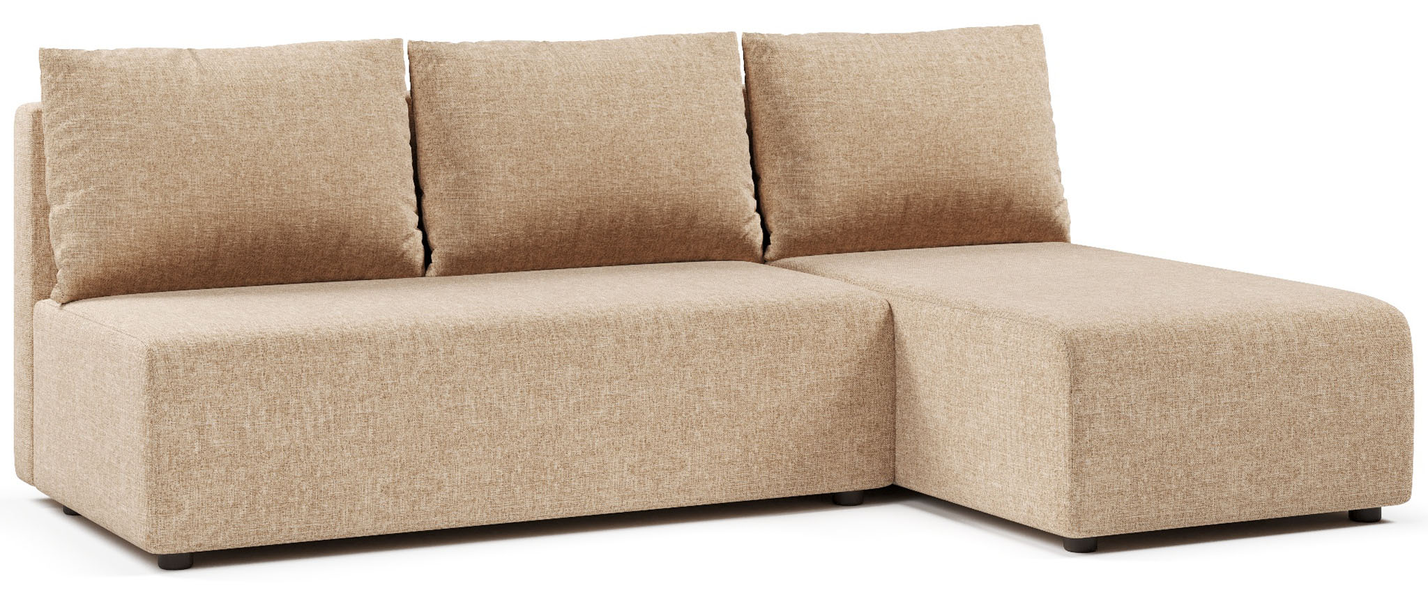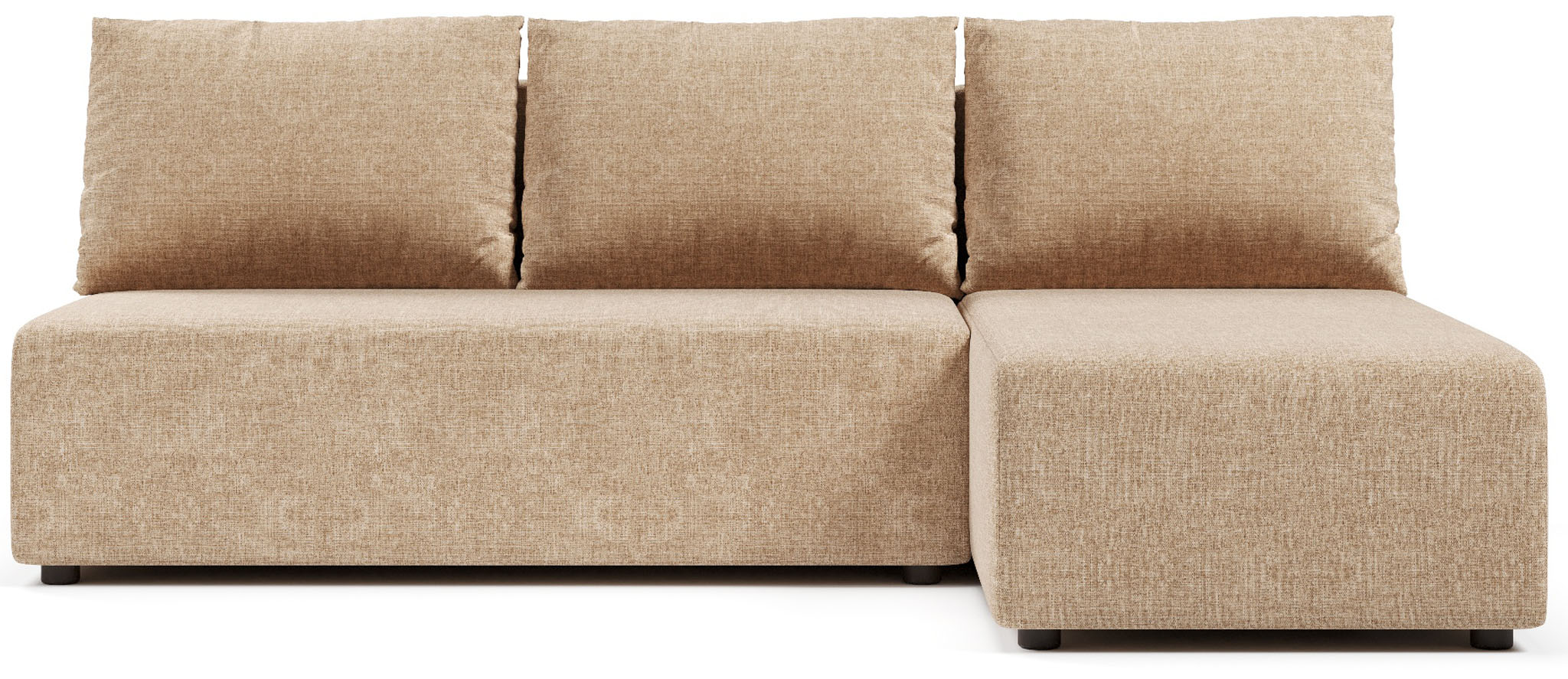 Угловой диван Каир выполнен в минималистичном стиле. Диван подойдет и для маленьких помещений, так как в модели отсутствуют подлокотники, которые сокращают пространство вокруг.