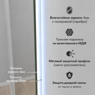 Безрамное зеркало овальной (капсульной) формы с контурной (тыльной) холодной подсветкой, свет 6000К. Подложка из высококачественного МДФ, светодиодная лента защищена матовым свето-рассеивателем от попадания пыли и влаги. Есть вывод 220W для подключения к сети (блок питания подсветки 12V), включение подсветки от выключателя на стене, либо от розетки.